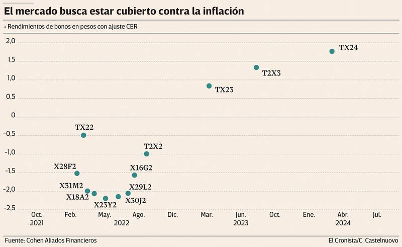 "Hoy todos los activos CER que vencen en 2022 presentan un rendimiento por debajo de la inflación", destacó Tomás Ruiz Palacios, estratega de renta fija de Cohen Aliados Financieros.