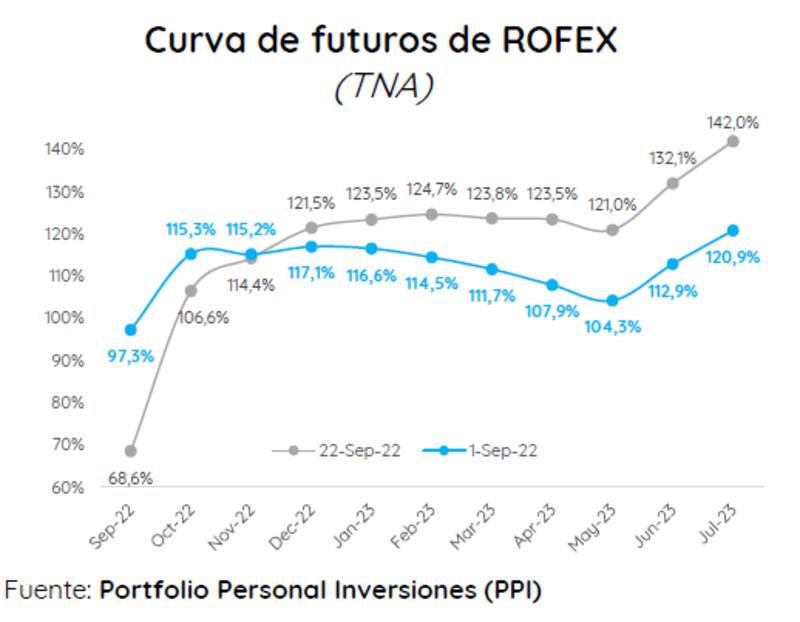 A comienzo de septiembre la tasa de devaluación implícita estaba en 117% y ahora opera en niveles de 212%.