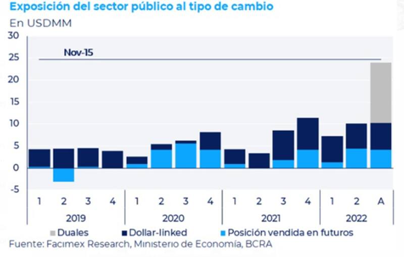 El economista de Facimex Valores detalló que, al sumar posición vendida de dólar futuro, el stock de dólar linked, y los bonos duales, la venta de instrumentos de cobertura cambiaria es de u$s 24.000 millones, similar a la del 2015 cuando era u$s 25.000 millones.