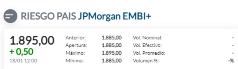 Ante este escenario de fuerte caída de los bonos, el riesgo país vuelve a apuntar al alza y se acerca a la zona de los 1900 puntos.