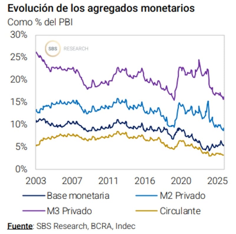 El BCRA proyecta un aumento de la base monetaria desde el 4,2% actual hasta el 4,8% del PBI hacia diciembre de 2026, consistente con compras de reservas por hasta u$s 10.000 millones.