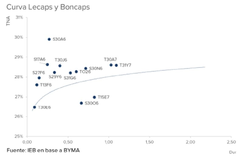 Bajo este contexto, destacan los Boncer a junio de 2026 (TZX26 y 2,9% TIR) y diciembre 2026 (TZXD6 y 5,2% TIR).