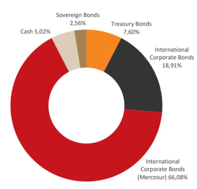 Se trata de una inversión en una cartera de activos diversificada de renta fija, América latina en su mayoría, con vida promedio de 1 a 3 años. Es administrada por IAM, tiene una tasa promedio del 2% y su duración es de 1,5 años.