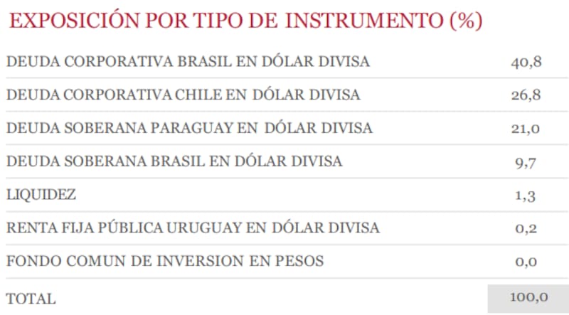 El objetivo de este fondo es preservar el capital. Se puede invertir en bonos de Chile, Uruguay, Brasil, México y Estados Unidos. Es administrada por Galileo, tiene una tasa promedio de 5,2%, dura 1,2 años y la calidad es de Investment Grade.