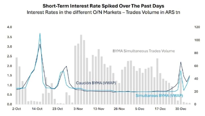Lo que se percibe es que el mercado se encuentra bajo tensión, con persistentes disparadas en las tasas de muy corto plazo.