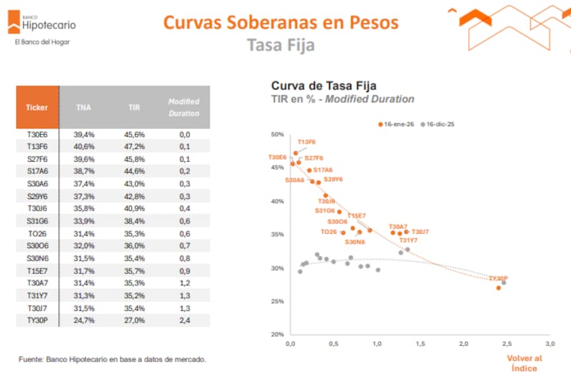 “El ajuste observado la semana pasada —del orden de 400 a 600 pb— reconfiguró los rendimientos y dejó a títulos como el T13F6 y el S27F6 (con vencimientos a mediados y fines de febrero, respectivamente) con tasas efectivas mensuales superiores al 3%”, advirtió el estratega.