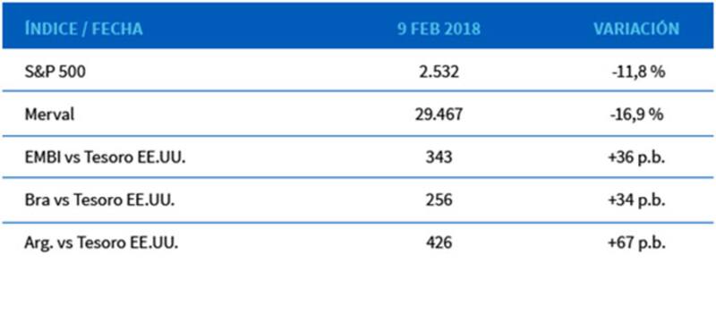 Una corrección típica en el S&P 500 ha tenido en otras oportunidades efectos locales más dañinos. “Creemos que, en esta ocasión, un menor impacto se explica en alguna medida por una perspectiva de crecimiento aún favorable para emergentes, así como el hecho de que la corrección global no parecería responder a un deterioro macroeconómico. ¿Hay un cambio profundo en la tendencia? Por un lado la fase de normalización monetaria parecería acelerarse, pero por el otro no se ve una desmejora estructural en los cimientos económicos de un mundo que crece de forma sincronizada. De igual forma, seguimos esperando para este 2018 una mayor volatilidad en los mercados globales, lo que representa una variable atendible dado el mayor beta relativo de la Argentina frente a eventos externos .