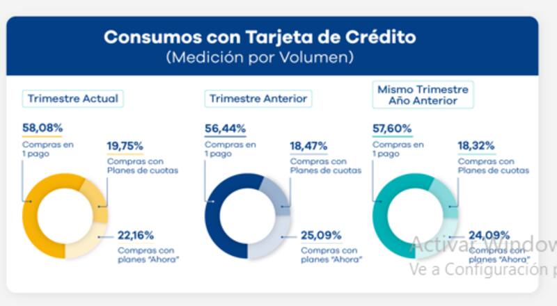 El 22,16% se realizaron con planes Ahora 12, con una baja respecto del 25,09% del período anterior y 19,75% fueron compras con otros planes de cuotas, frente a 18,47% en el trimestre anterior.