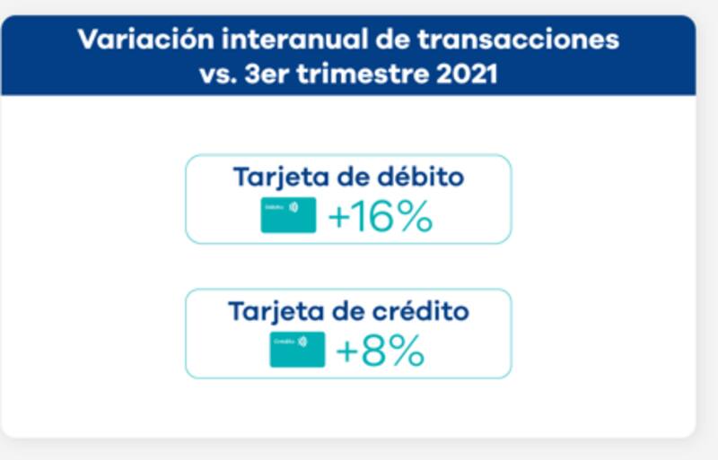 También hubo un crecimiento interanual en las transacciones con tarjeta de débito del 16%, mientras que el uso de la tarjeta de crédito creció un ocho por ciento.