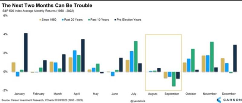 Según la consultora internacional, Carson Investment Research, en los últimos 10 y 20 años, el S&P500 operó con ínfimas ganancias en el mes de agosto, a la vez que retrocedió en los meses de septiembre.