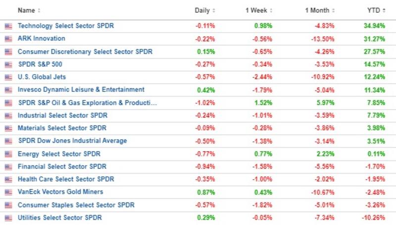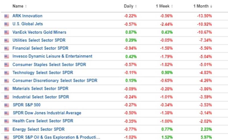 Las pérdidas son lideradas por el ETF de acciones tecnológicas y crecimiento a largo plazo (ARKK), que baja 13,5% en agosto, seguida por el ETF de aerolíneas, que baja 10,9% y el de mineras, retrocediendo 10,7%.