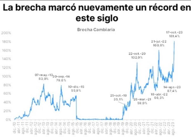 "La gran duda del mercado pasa por lo que sucederá a partir del 23 dado que la brecha cambiaria supera el 160% y las reservas netas son negativas, haciendo muy difícil el control de daños en un contexto como el actual. Por eso se vio un fuerte aumento de la volatilidad de los tipos de cambio financieros y una creciente búsqueda de cobertura a través de futuros", explicó.
