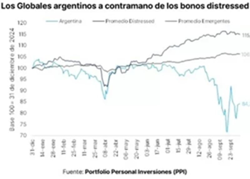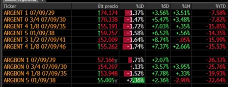 "Los bonos en dólares retroceden en un contexto de menor flujo de noticias desde Washington. Además del swap de monedas mencionado por el secretario del Tesoro, Bessent, la última especulación de los inversores apunta a algún tipo de garantía de EE.UU., ya sea para un préstamo o una posible emisión de deuda, lo que facilitaría el acceso del país al mercado", dijeron.