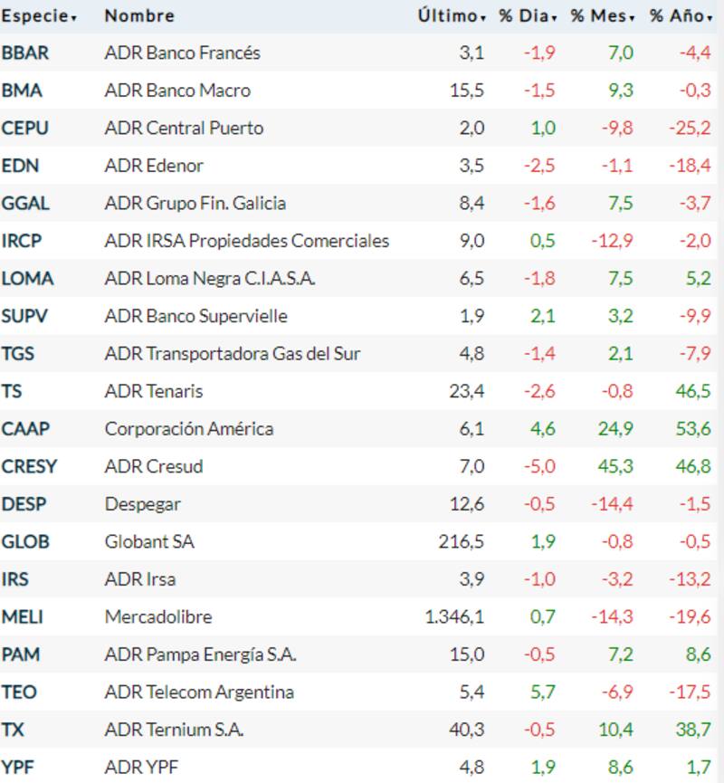 Entre los ADR también se vieron más retrocesos que alzas. También los incrementos fueron liderados por Telecom (5,7%) y las pérdidas por Cresud (5 por ciento).
