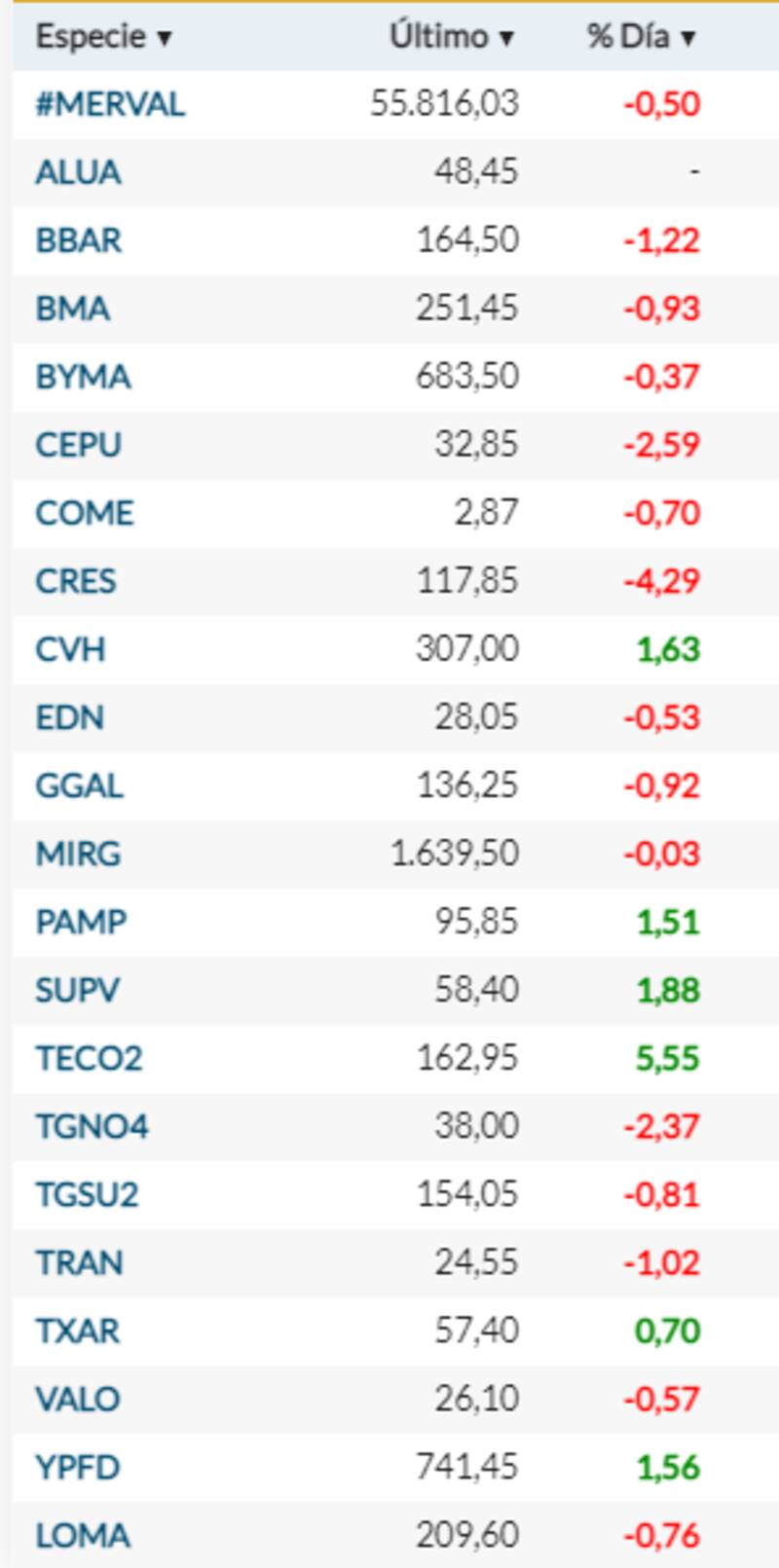 La principal suba la mostró Telecom (5,55%) y la baja más pronunciada fue la de Cresud (4,29 por ciento). No obstante, las velas rojas dominaron la pizarra.