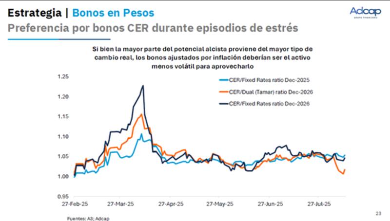 En este contexto, desde Adcap considera que el punto de entrada en pesos es atractivo, en particular, con los títulos que ajustan por CER.