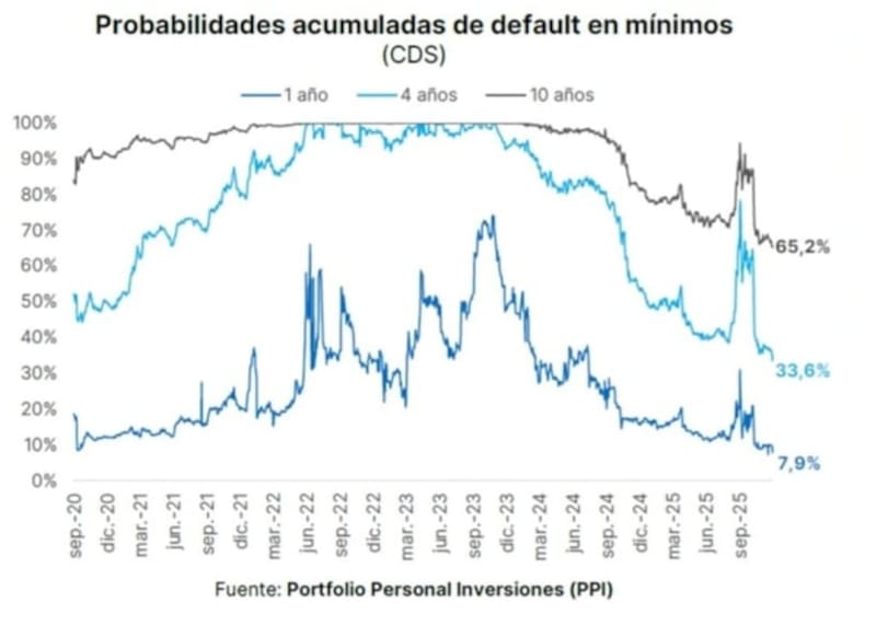 Así, hoy la probabilidad de default de la deuda es la más baja desde que los nuevos bonos salieron a cotizar.