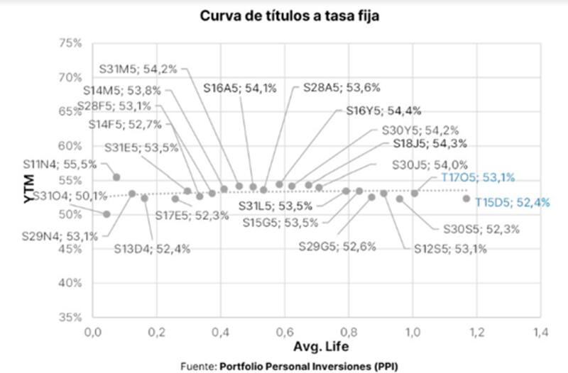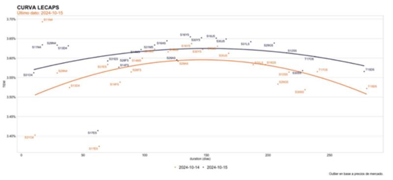 "En general un inversor que busca apreciación de capital toma posiciones en el tramo más largo de la curva que le permite, por compresión de la tasa, generar esa ganancia. El tramo corto de la curva de Lecaps, está casi aplanado, pero permite obtener rendimientos interesantes para hacer algo de carry en pesos", remarcó.