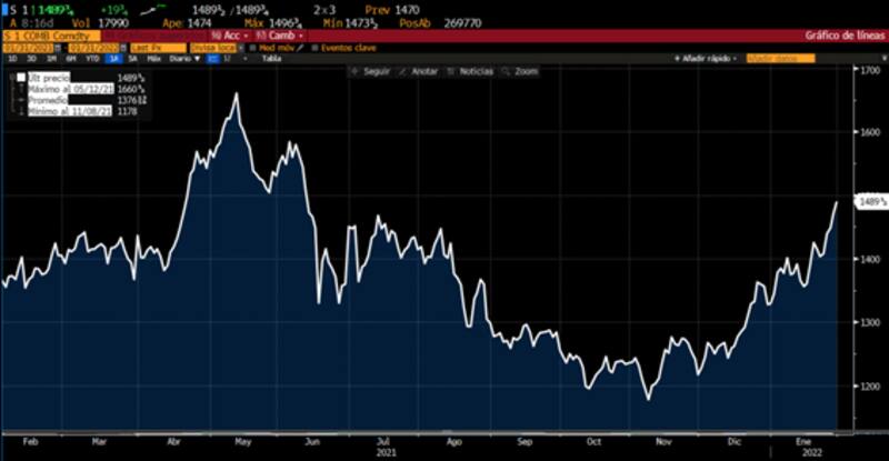 "Tanto el dólar como las tasas de los bonos americanos, desde mediados de 2020 a la fecha se estuvieron anticipando a la normalización en la política monetaria de la Fed y los bancos centrales del mundo. Creo que esto va a continuar, es decir, dólar en alza, lo cual suele tener un impacto negativo en las materias primas. Si bien podremos ver materias primas más bajas, creo que igual se van a mantener en valores altos. Todo esto agrega menos viento de cola, pero todavía no lo veo como un viento en contra", dijo.