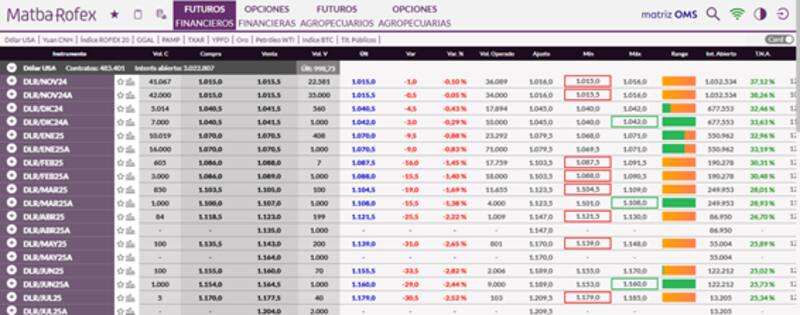 El miércoles, todos los tramos de la curva de devaluación implícita en Rofex operaron a la baja.