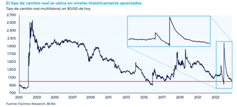Para los analistas de Facimex Valores, "antes de desacelerar el crawling peg, sería deseable que la inflación en servicios desacelere con más fuerza para no profundizar la apreciación cambiaria en un contexto en el que el tipo de cambio real se encuentra en niveles históricamente apreciados".
