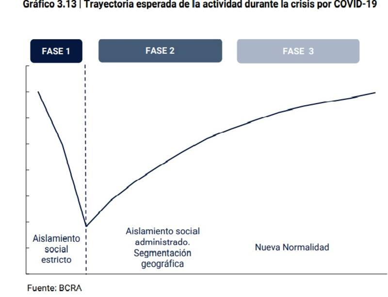 El BCRA consideró que, de no mediar un rebrote que reformule la incorporación de nuevos sectores a la actividad, en la tercera fase del impacto del Covid-19 la economía debería volver a los niveles previos al establecimiento de la cuarentena .