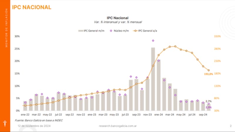 De esta manera, la inflación de octubre fue el registro más bajo en tres años y la tasa interanual se ajustó al 193%, acumulando un 107% en lo que va del año