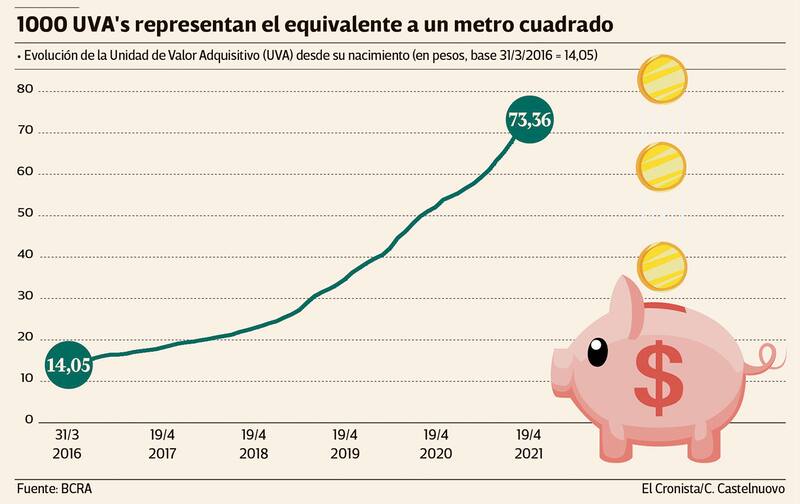 Uno de los argumentos que esgrimen los autodenominados hipotecados es que el valor de la UVA pasó de 14,05 el 31 de marzo de 2016 (en ese momentos 1000 UVAs representaban el valor del metro cuadrado) a 73,36. Es decir, se quintuplicó. En ese mismo período, el índice de salarios que sigue el Indec aumentó "apenas" 245%.