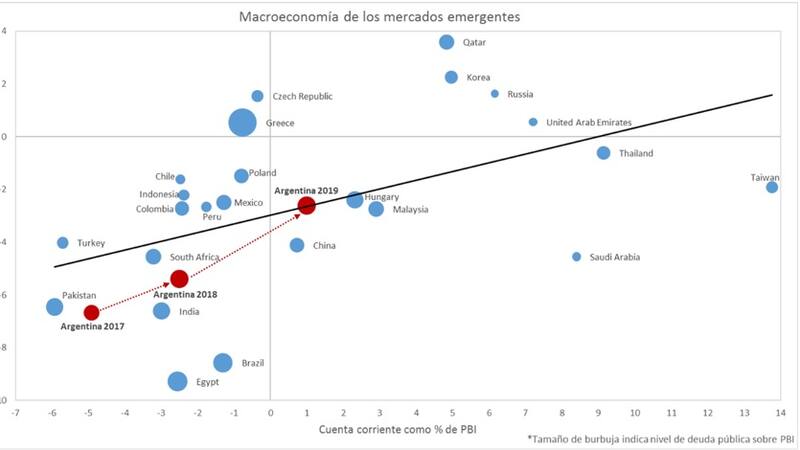 Además, Mazza destaca que, en base a las estimaciones que hace el FMI para el resto de los países emergentes podemos ver que Argentina ha mejorado relativamente, aunque aún se encuentra con fuertes desequilibrios que buscará corregir en 2019 llevando el déficit primario a 0% y la cuenta corriente a terreno positivo según varias estimaciones privadas. “De esta forma, Argentina se encontraría dentro del promedio de emergentes con esos valores. De suceder que la cuenta corriente quedase en terreno negativo, convergería a los números de países de la región como Chile, Colombia, México o Perú , cierra el Research de Bull Market Brokers.