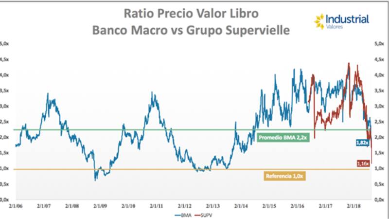 Sobre esto, Ariel Sbdar , Head de Equity de Industrial Valores señaló que “al cierre del viernes, Grupo Supervielle cotiza 1,16 veces sobre patrimonio neto mientras que Banco Macro cotiza 1,82%.