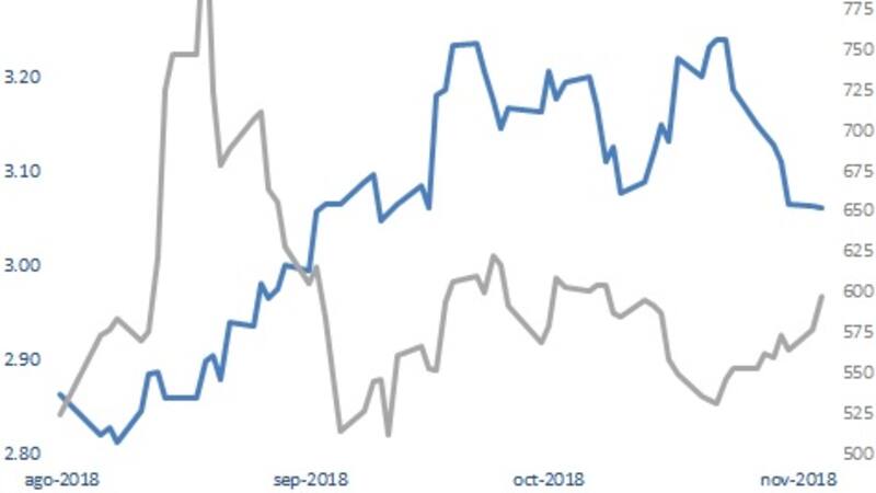“A fines de octubre se recuperó la tónica en precios de los bonos argentinos, permitiendo que descomprima los niveles de los seguros contra default, llevando a que el CDS a 5 años toque un mínimo mientras la tasa americana superaba el 3,20%. Pero desde allí los caminos volvieron a separarse, y mientras que la 10y redujo tasa en 18 puntos básicos, la cobertura contra default local trepó casi 70 puntos básicos , analizó.