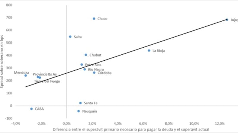 “Al analizar la sustentabilidad de deuda, se observa el superávit primario necesario de cada provincia para repagar y luego se le calcula el spread sobre el soberano, es decir, cuánto más rinde el bono provincial por sobre su soberano comparable", con eso "vemos cuales están bien (y mal) valuadas contra el soberano , apunta el analista.