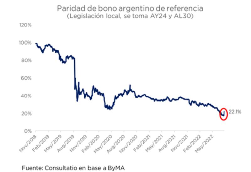 Es que lo cierto es que hoy, aun con el rebote reciente, la deuda argentina sigue operando con precios muy deprimidos y paridades históricamente bajas.