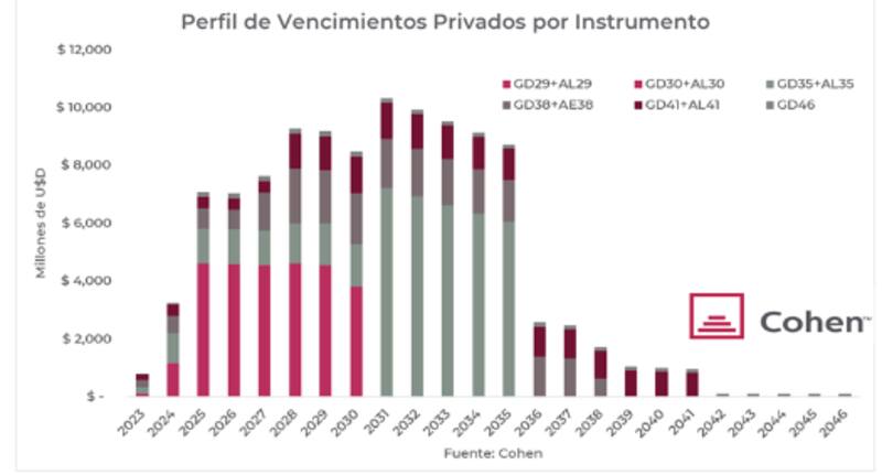 "En este año comienzan a amortizar los bonos a 2030 y 2029, que acumulan casi el 60% de los vencimientos para los próximos cinco años", dijeron desde Cohen.