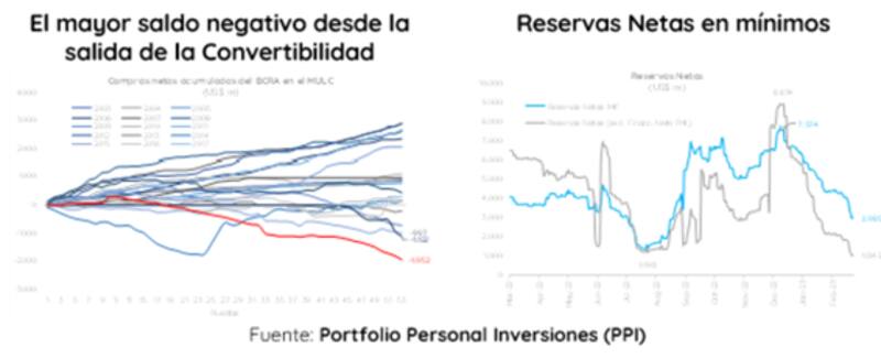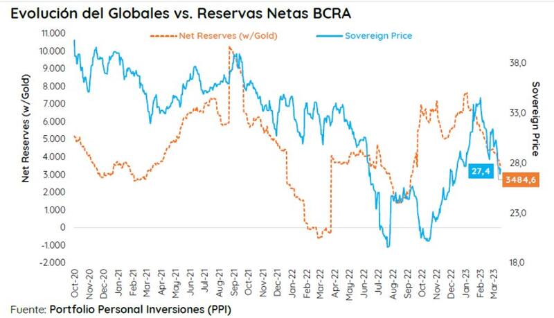 Los analistas de Portfolio Personal Inversiones (PPI) consideran que es clave la relación entre el sendero de reservas netas y el precio promedio ponderado de los bonos.