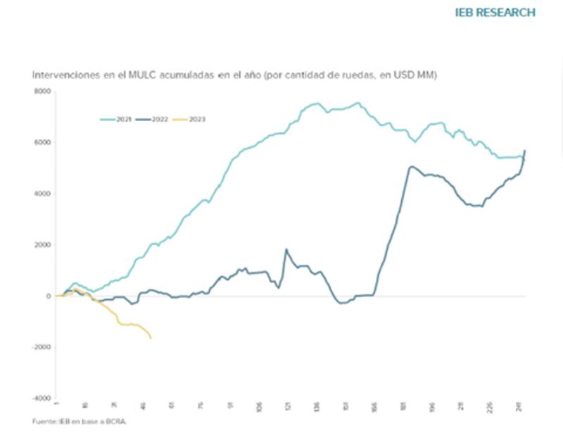 "Observamos que el BCRA ha detenido el programa de recompra de bonos en el mercado secundario. La dinámica de pérdida de reservas del BCRA en el MULC que observábamos la semana pasada parece haberse acelerado aún más en las últimas ruedas", detalló el especialista de Grupo IEB.