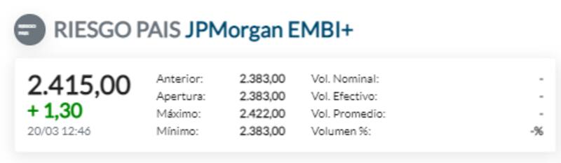 El riesgo país trepaba este miércoles hasta los 2469 puntos.
