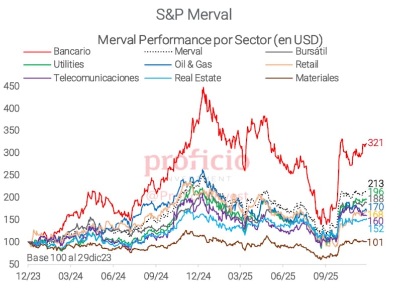 “Las acciones argentinas quedaron rezagadas durante 2025 frente a bonos y otros índices regionales, acumulando una caída en dólares este año. Sin embargo, vemos fundamentos para la recuperación en 2026 gracias a la sorpresa electoral, la agenda de reformas y un contexto internacional favorable. Esto abre espacio para retornos de dos dígitos en el Merval y oportunidades destacadas en bancos, energía y telecomunicaciones”, afirmaron.