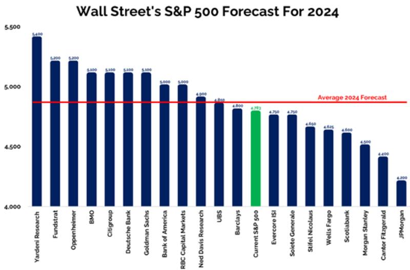 Se inició 2024 y como en cada comienzo de año, los bancos de inversión hacen sus estimaciones para el S&P500.