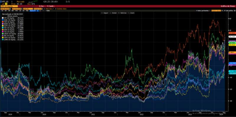 Lo que se puede encontrar es que hay papeles que están bastante por encima de los valores previos a las PASO, y otros nombres que se ubican todavía muy lejos de dicho valor.