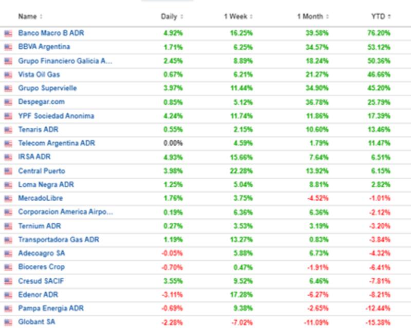 También se encuentran YPF, Cresud, IRSA y Central Puerto, que se ubican entre 15% y 29% por encima de los valores previo a las PASO.