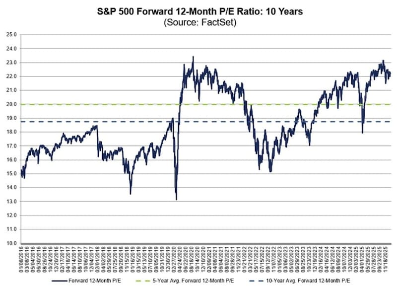 Actualmente, el S&P500 cotiza a 22 veces ganancias, apenas debajo de 23 veces ganancias que llegó a cotizar a mitad de noviembre.