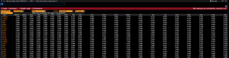 Tomando una matriz de correlación entre la variación diaria de las acciones y el CCL desde 2022 a la fecha, las acciones que presentan la mayor correlación son