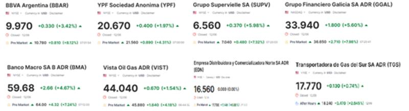Lo que se observa en la pre apertura del mercado es que los ADR reaccionan con fuerza.