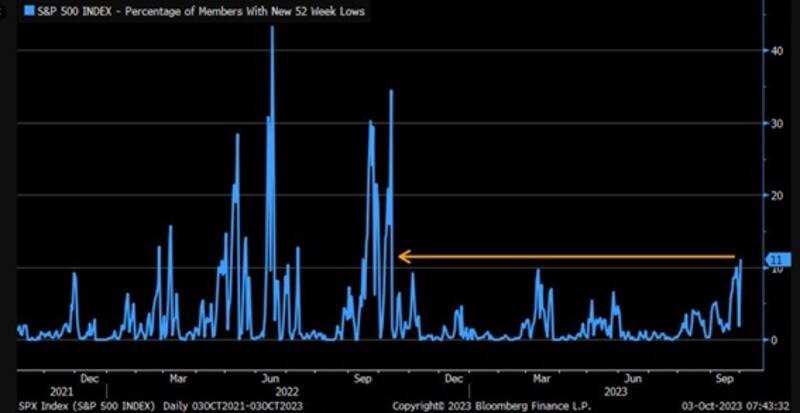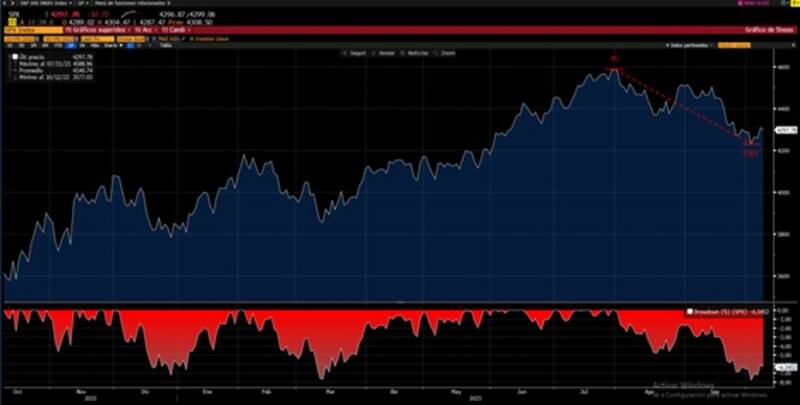 De esta manera, el S&P500 alcanzó su menor nivel desde junio pasado, borrando parcialmente las ganancias evidenciadas en la primera parte del 2023.