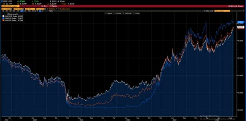 A lo largo de las últimas semanas, el mercado viene incorporando esa expectativa de tasas más altas mediante un rally en los rendimientos de los bonos del tesoro americano, los cuales alcanzaron máximos de 16 años.