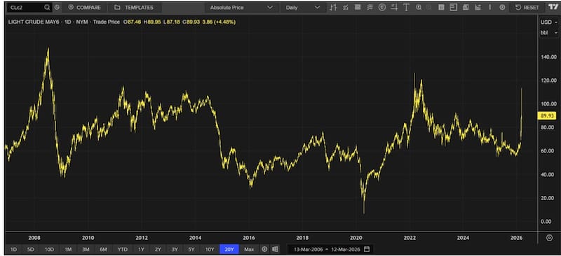 Sin embargo, una vez que Trump indicó que el conflicto podría estar llegando a su fin, el crudo regresó a niveles de u$s 89 el barril.