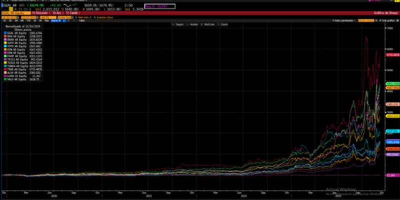 Finalmente, si bien el S&P Merval subió 2340% en pesos durante toda la gestión, existieron acciones que ganaron más que el índice local.