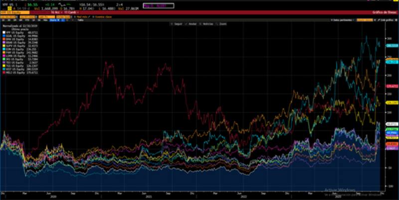 Las acciones argentinas en Wall Street que más subieron en estos 4 años fueron las de Vista, que avanzaron 280%, seguidas por Pampa, Edenor, TGS y Mercado Libre, con ganancias de entre 170% y 241%.