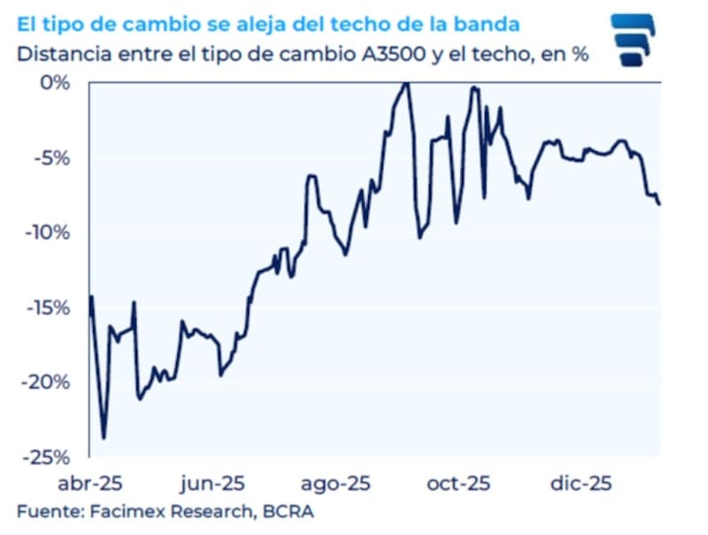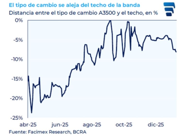 Habiéndose conocido el 2,8% de diciembre, la banda superior tiene una pendiente mayor, permitiendo que tipo de cambio tenga más espacio antes de tocar la banda superior.